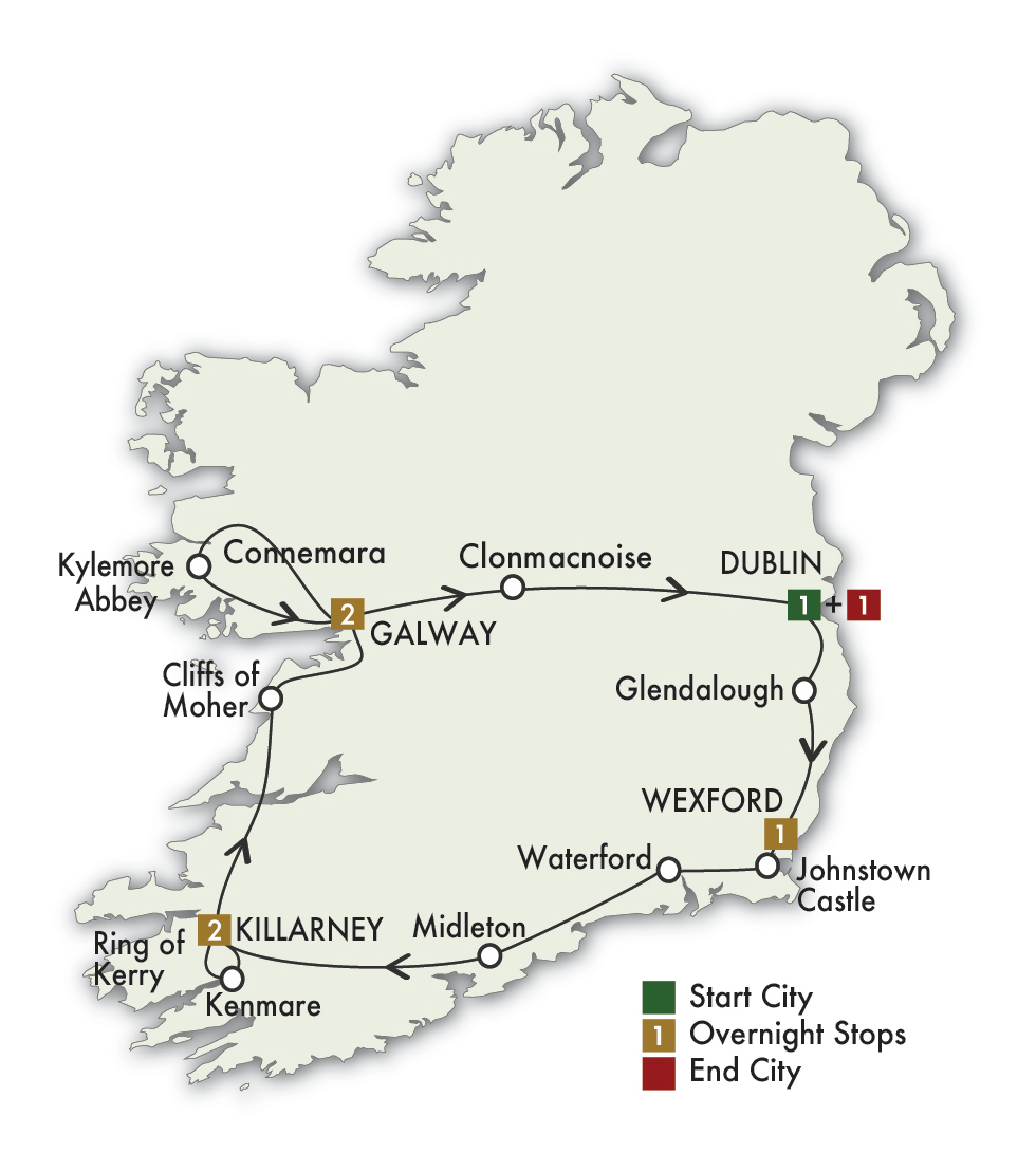 - Drive the rugged coastlines and countryside as you explore. See Dublin’s highlights, then head to Belfast as you start your route around Ireland. See Donegal, Westport, Dingle, Waterford, and so much more.