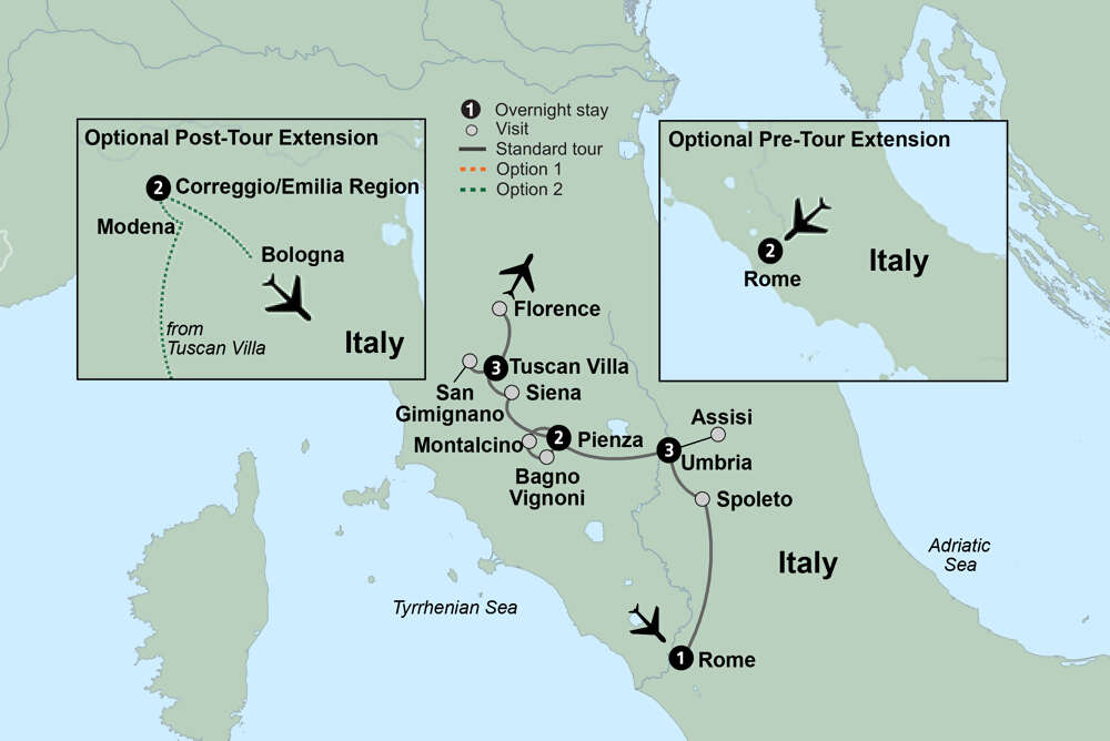 On a journey through the less-traveled country roads of Umbria and Tuscany, discover another side to the Italy you love. Stroll Assisi’s old city, and explore the Umbrian hill town of Spoleto, where the gilded façade of the cathedral rivals with the silvery sheen of the olive trees. Visit Florence, the “Cradle of the Renaissance.” In Siena, stand inside one of Tuscany’s most ancient piazzas. Admire the famous towers of San Gimignano and hunt for truffles in the Umbrian countryside. Delight in regional specialties and Italian wine with every dinner. Feel like a local as you discover the marvels of wine, cuisine, culture, and history.