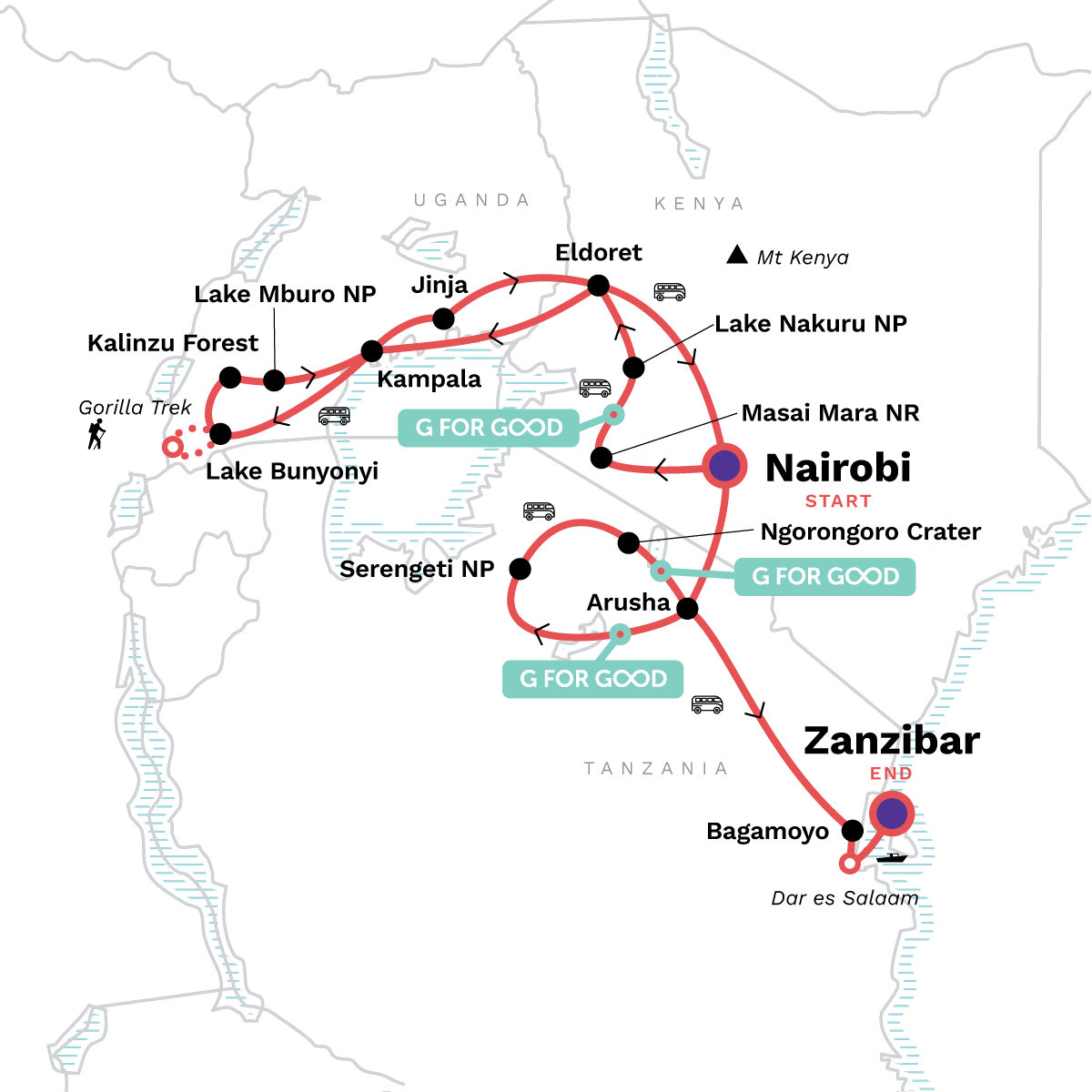 Now's the time to explore Africa on your terms with this tour that's affordable for young travellers. Animals? Check. Adventure? Yep. Best travel friends? (Probably thought we were gonna use another 'A' word there, weren't you?) You bet. We've got everything you're looking for in an African exploration on this 24-day tour through East Africa. Embark on wildlife safari drives across the Masai Mara and Serengeti and trek through remote forests for the chance to encounter mountain gorillas in their own habitat. Travel aboard the Lando (overland adventure vehicle) is well-paced and wilderness camping along the way brings you closer to the region’s wildlife. Our certified CEO (Chief Experience Officer) will lead the way and share with you the hidden gems that will have your camera’s shutter working overtime.