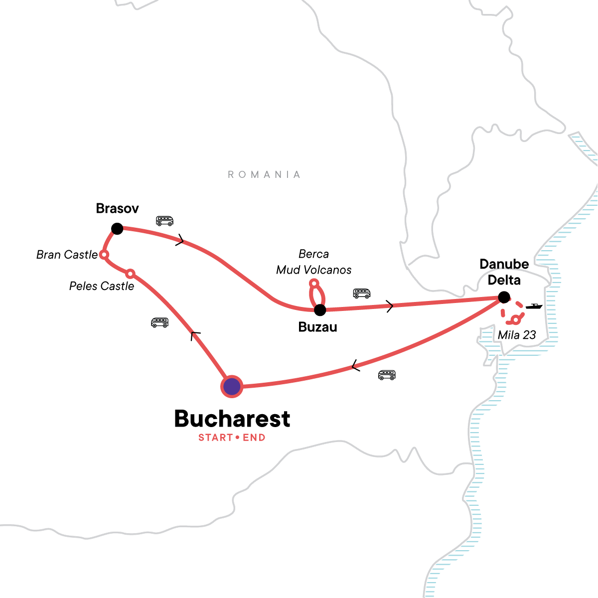 Your Welcome Moment: Meet Your CEO and Group. Visit the town of Sinaia. Bran Castle entrance ticket. Free time in Brasov. Visit to the Berca Mud Volcanoes. CEO-led orientation walk in Mila 23. Full-day guided tour of the Danube Delta by speedboat. All transport between destinations and to/from included activities