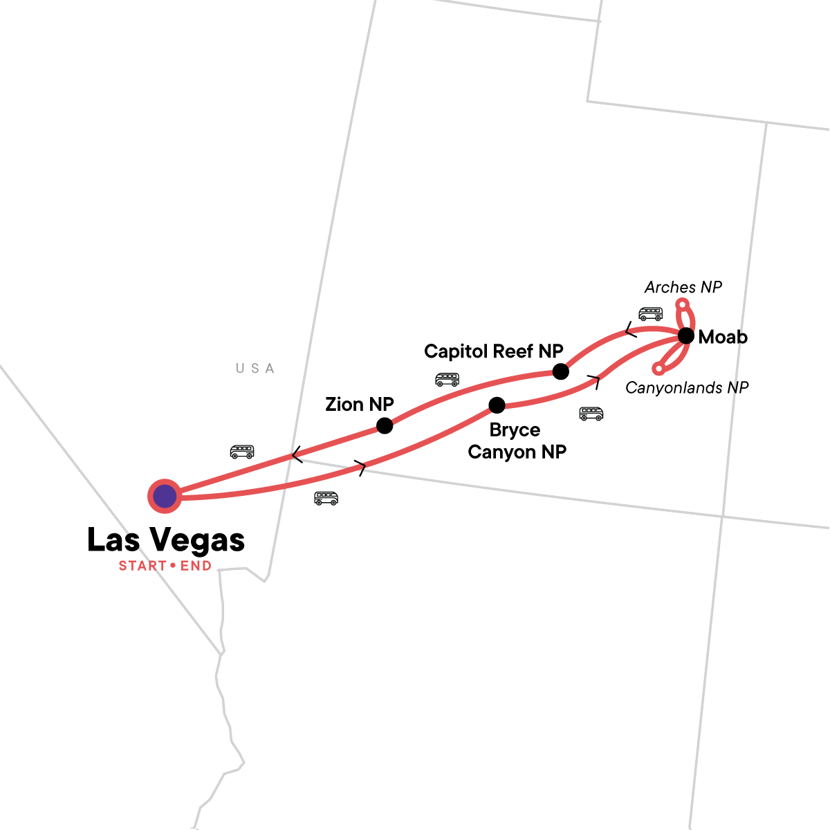 Take the short drive from Zion to Las Vegas. Tour ends on arrival. Onward travel should be booked no earlier than 3pm.