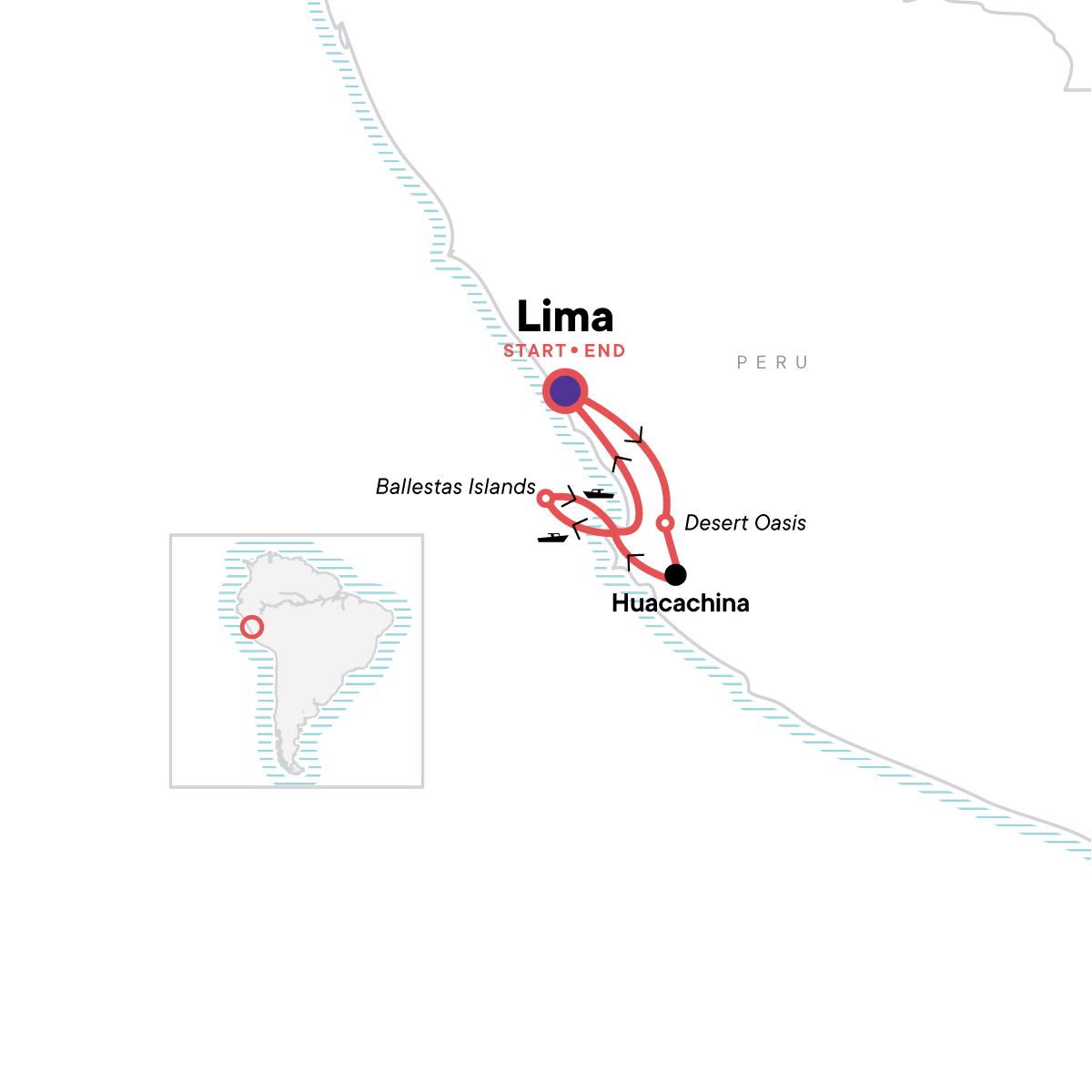 Your Foodie Moment: Seafood Lunch at the beach, Cerro Azul. Sandboarding and dune buggy excursion to a desert oasis. Boat excursion to spot wildlife at the Ballestas Islands. All transport between destinations and to/from included activities.